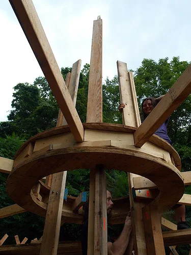 First launched in July 2018, Siren Island was conceived and designed by Serena JV Elston and constructed with the help of a team of seven fabricators. Functioning as both a movable landmass and a plinth-like performance stage, the structure has hosted four major activations
