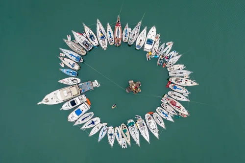 What might the embodied experience be of a place untainted by patriarchy? This question inspired Siren Island, an interactive marine structure and performance series. Drawing on speculative and material strategies, the project invokes the ancient myth of the Sirens to explore themes of desire, the untamable feminine body, and the liberatory act of un-civilizing. Existing as a sovereign space apart from land and its attendant systems of power, Siren Island imagines a location where bodies can detox, find relief from oppression, and reconnect with primal states of being.